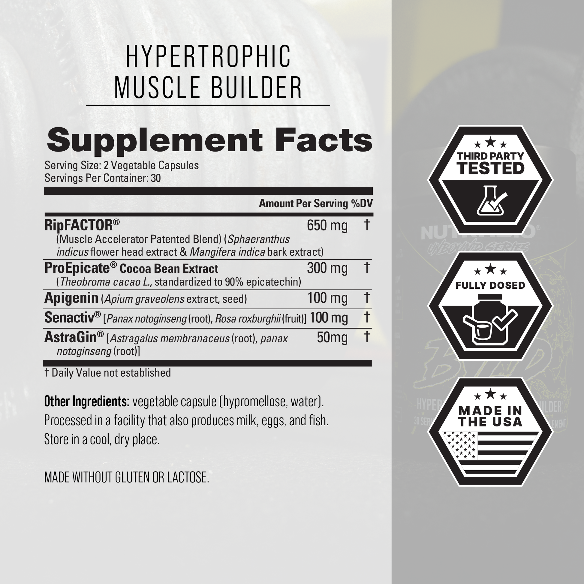 Nutrabio Unbound Series BYLD Hypertrophic Muscle Builder (60 Caps)